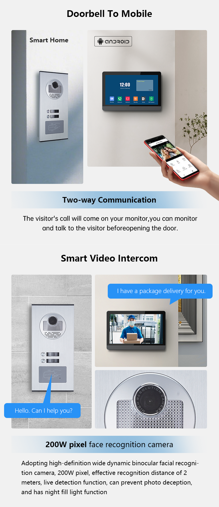 7-Inch Intercom Monitor Home Automation Control System with IPC CCTV Camera Video Door Phone Central Touch Screen Support