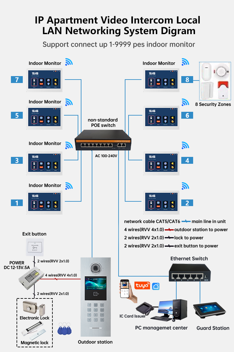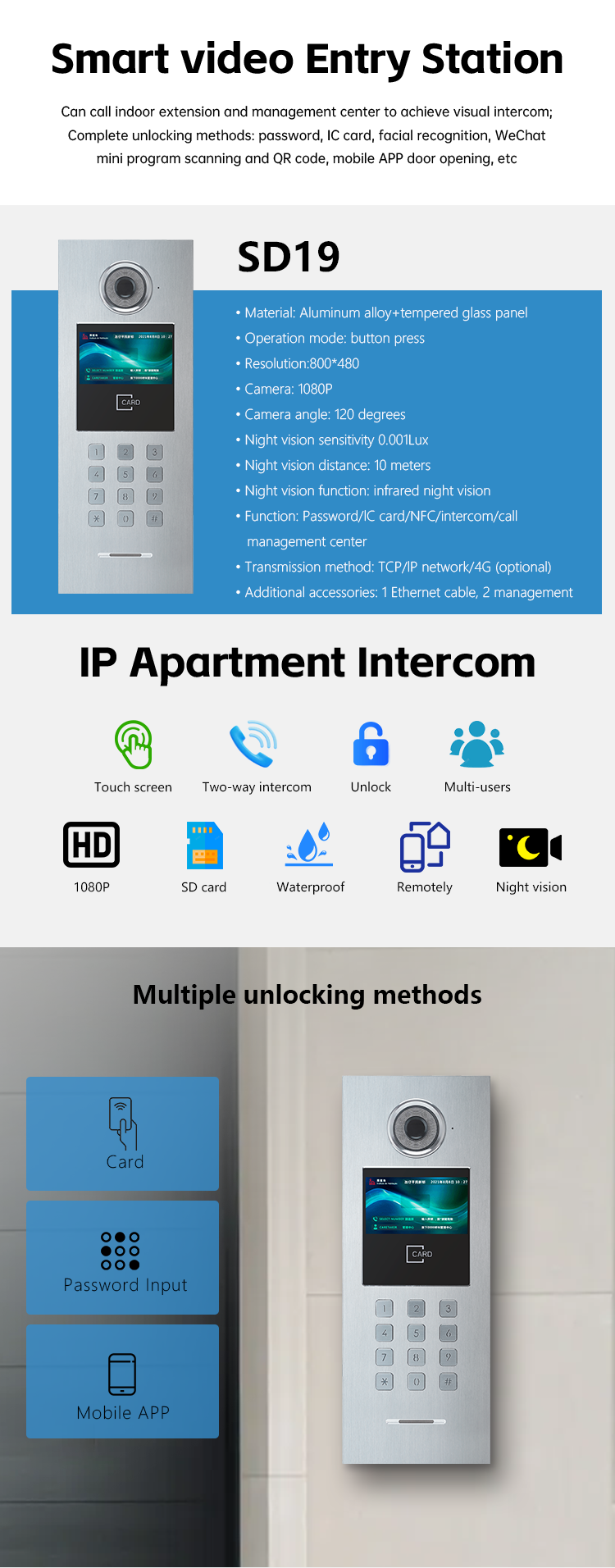 WiFi Compatible Wireless Video Audio Doorbell Intercom System Indoor Units Color Camera for Indoor Outdoor Applications Metal